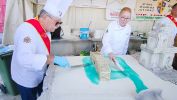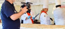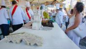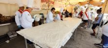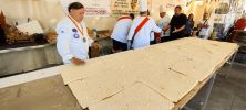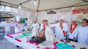 Una gigantesca torta di ricotta siciliana, dal peso di 500 chili, ha conquistato oggi il Foro Italico di Palermo, omaggiando la patrona della città, Santa Rosalia. L’opera dolciaria, voluta dal maestro pasticcere Vincenzo Rosciglione – discepolo Escoffier e ambasciatore della pasticceria palermitana – è stata realizzata in collaborazione con i Discepoli Escoffier Sicilia in occasione dei preparativi per il Festino di Santa Rosalia.