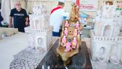 Con dimensioni impressionanti (4 metri di lunghezza e 1,5 di larghezza), la torta è stata allestita su uno stend appositamente preparato, trasformandosi in una vera e propria installazione artistica. Le decorazioni, curate da artisti locali, hanno ripercorso la storia di Palermo e il suo legame con la Santuzza, tra simboli sacri, rappresentazioni barocche e icone della devozione popolare.